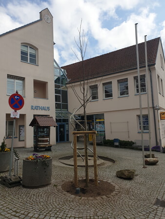 Vor dem Rathaus steht nun eine Italienische Erle. Bei der Italienischen Erle handelt es sich um einen mittelstark wachsenden Baum. Im Alter erreicht der Baum eine Wuchshöhe von ca. 10 bis 15 m und eine Breite von 4 bis 6 m. Im Gegensatz zu anderen Erlen ist die kegelförmige Krone regelmäßig und dicht. Die Blätter der Italienischen Erle sind sehr schön dunkelgrün gefärbt und weisen einen regelmäßigen Wuchs auf. Die männlichen und weiblichen Blüten in Form von Kätzchen erscheinen vor dem Laubaustrieb im März und April. Die daraus entstehenden zapfenähnlichen Fruchtstände sind auffallend und schmücken die schönste der Erlen auch noch im Winter. Die Italienische Erle ist stadtklimaverträglich und sehr windfest, wir hoffen, dass sie sich vor unserem Rathaus wohlfühlt und prächtig gedeiht. Wir danken den Mitarbeitern des Bauhofs fürs Einpflanzen.