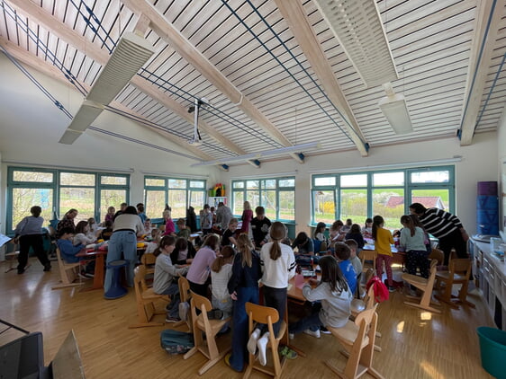Auch dieses Jahr organisierte der Schulförderverein „Heinzelmännchen“ das Oster-/Frühlingsbasteln für die Kinder aller Klassenstufen. Knapp 60 Kinder kamen am Montagmittag, 7.4.2025 – verteilt auf zwei Gruppen – zum gemeinsamen Basteln.