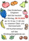 Am Montag, 6.10.2025, feiert der Kindergarten sein Erntedankfest im Kinderhaus. Im Anschluss werden die Vorschüler die mitgebrachten Erntegaben im Garten des Kinderhauses verkaufen.