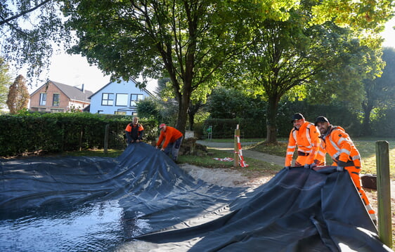 In der vergangenen Woche sanierte der Bauhof gemeinsam mit dem NABU das Biotop auf dem Erligheimer Friedhof. Etwas in die Jahre gekommen und von der Bepflanzung überwuchert, zudem die schlechte Wasserqualität machten die Sanierung dringend nötig. Es wurde eine neue Teichfolie verlegt und das Biotop mit frischem Wasser befüllt. Eine neue Bepflanzung erfolgt in den nächsten Wochen, sodass schnell wieder ein Biotop entstehen kann.