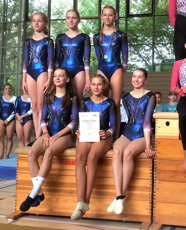 Unsere Mannschaften belegten schließlich die Plätze 2 und 4 und damit ist unsere Wettkampfgemeinschaft Vizegaumeisterin in der LK2. Vom SKV turnten Tess Mayer (16), Luisa Gast (15), Iona Ohlhafer (14) und Shania Knoll (14).