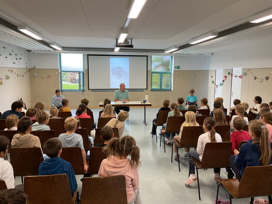 Vergangene Woche durften die Kinder der Klassenstufen 3 und 4 an einem besonderen Event teilnehmen. Der Autor Manfred Theisen reiste extra aus Köln an, um aus seinem Buch „Monsterland – Ein Geist auf der Flucht“ vorzulesen. Herr Theisen entführte die Kinder in den mystischen Freizeitpark Monsterland, um dort gemeinsam mit Fanni und ihrem Vater Mark van Helsing auf Geisterjagd zu gehen. Wortgewandt und mit viel Witz erzählte Herr Theisen seine Geschichte. Ein besonderes Highlight war, dass auch die Kinder sowie die Lehrkräfte in Rollen schlüpfen und aktiv an der Autorenlesung teilnehmen konnten.