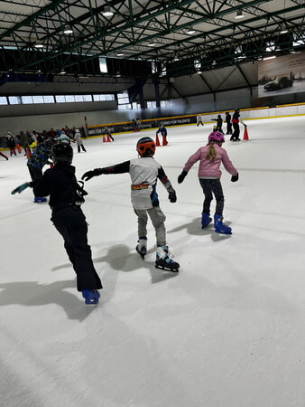 Mit dem Bus ging es zum gemeinsamen Ausflug in die Eishalle in Bietigheim. Gut geschützt mit Helm und festen Handschuhen verwandelten sich die Dritt- und Viertklässler in echte Eiskunstläufer und Flitzer. Für viele Kinder war es der erste Besuch auf dem Eis. Mithilfe von Pylonen zum Schieben und mit der Unterstützung durch die Lehrerinnen und unsere FSJ konnten auch die Anfänger schnell erste sichere Schritte wagen. Die fortgeschrittenen Läufer zeigten ihr Können bei kleinen Tricks und beim gemeinsamen Fangenspielen auf dem glatten Parkett.