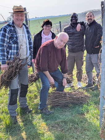 Am Samstag, 7.3. hieß es für uns wieder: ab in die Weinberge. Bei bestem Wetter haben wir die Reben für unsere bevorstehende Zwiebel- und Kartoffelkuchen-Aktion im Herbst gelesen. Es ist jedes Jahr aufs Neue ein besonderes Erlebnis zu sehen, wie Hand in Hand gearbeitet wird, um die Grundlage für unsere traditionellen Spezialitäten zu schaffen. Der gesamte Erlös unserer Backaktionen kommt unseren Projekten in Ghana zugute.