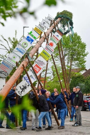 Der Maibaum wird um 18.00 Uhr aufgestellt, die Bewirtung beginnt aus Sicherheitsgründen erst nach dem Aufrichten des Baumes!